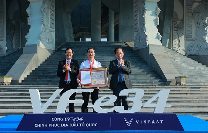 Ông Thang Văn Phúc, Chủ tịch Trung ương Hội kỷ lục gia Việt Nam trao kỷ lục “Đoàn caravan xe điện nhiều nhất Việt Nam” cho VinFast. Ông Phúc đánh giá kỷ lục này là một dấu mốc quan trọng trong hành trình chinh phục Việt Nam trong lĩnh vực ô tô điện của VinFast khi việc chuyển đổi từ các động cơ xăng dầu sang chạy bằng năng lượng điện đang là một xu thế trên toàn thế giới. “Nói như vậy để chúng ta thấy được VinFast đã và đang đi theo đúng sự phát triển chung của thời đại”, đại diện Hội kỷ lục gia Việt Nam nhấn mạnh.