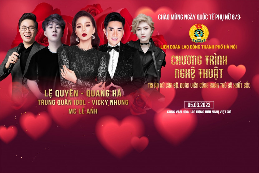 Theo đó, Chương trình được đầu tư sản xuất và dàn dựng công phu, mang tính nghệ thuật cao, quy tụ nhiều nghệ sĩ, ngôi sao ca nhạc tên tuổi được khán giả mến mộ như Lệ Quyên, Quang Hà, Trung Quân Idol, Vicky Nhung... hứa hẹn sẽ mang đến cho nữ cán bộ, đoàn viên Công đoàn Thủ đô xuất sắc một không gian nghệ thuật đặc sắc, ấn tượng.