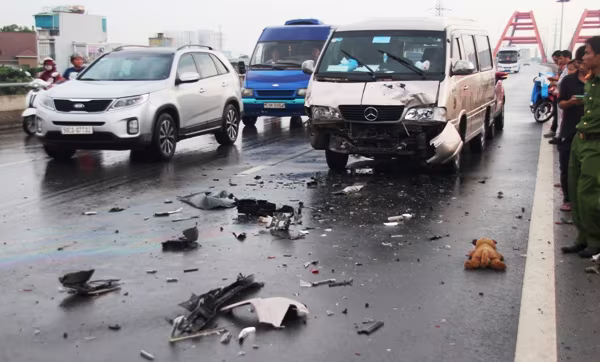 Tài xế ô tô 4 chỗ liền bật đèn ưu tiên cho xe thắng gấp thì bất ngờ ô tô 16 chỗ mang BKS: 53M – 8180 do tài xế Trần Ngọc Nam (SN 1986) chạy phía sau lao tới húc mạnh vào đuôi, đẩy đi 20m rồi dừng lại. Tiếp tục, một ô tô 5 chỗ mang BKS: 61A – 284.04 chạy phía sau không xử lý kịp tông trúng.