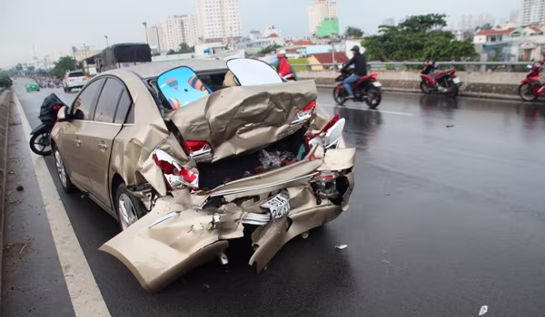 Phần đuôi ô tô 4 chỗ hư hỏng nặng