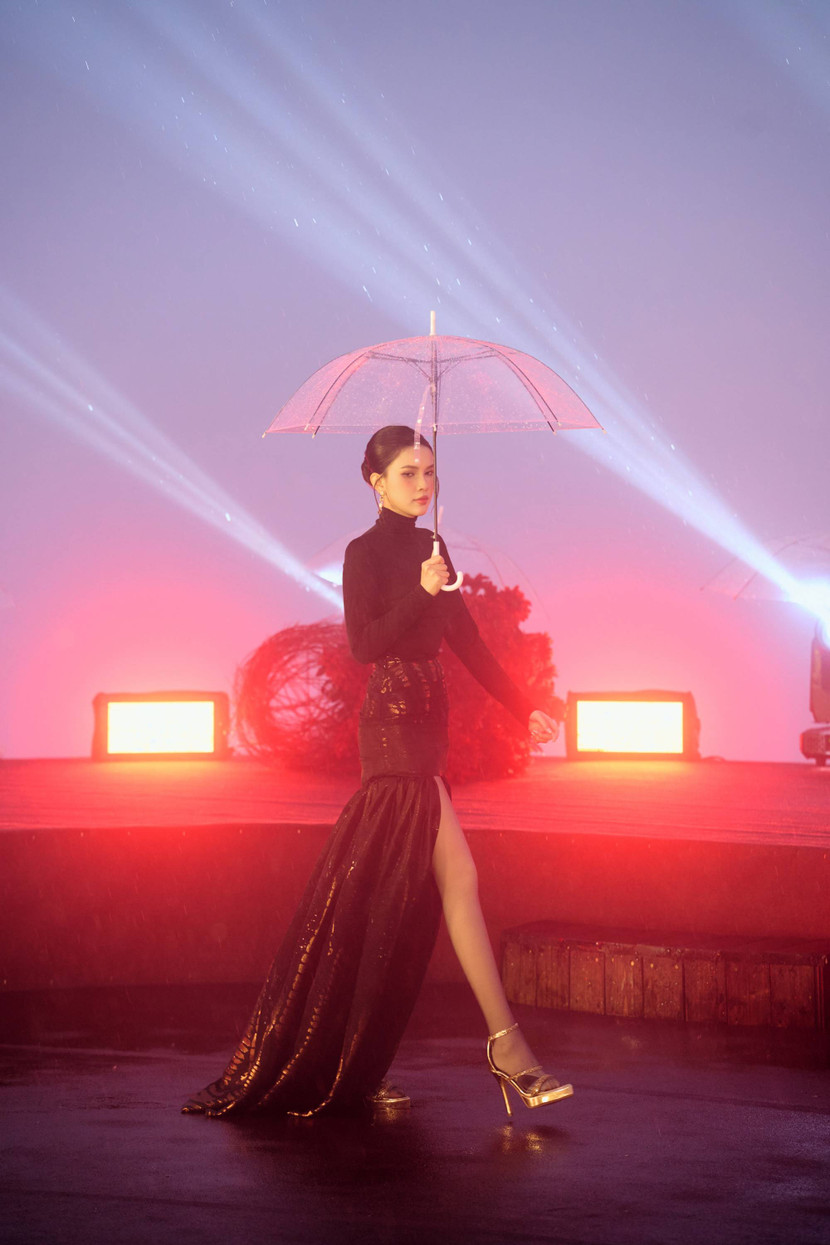 Mở màn show diễn, Á hậu 2 Miss Earth 2025 xuất hiện trong thiết kế đầm đen với phần thân trên ôm sát, tối giản mà sang trọng, tôn đường cong cơ thể và tạo cảm giác hiện đại. Phần chân váy tà dài có độ bắt sáng tinh tế, giúp người đẹp khéo khoe đôi chân thon dài và lối catwalk uyển chuyển hút mắt. Bên cạnh đó, Á hậu Linh Đan còn tỏa sáng với vẻ đẹp nhẹ nhàng, trong trẻo nhưng vẫn đậm khí chất mạnh mẽ, độc lập, mang đến cảm giác dịu mát, nồng nàn và ấm áp như hơi thở của núi rừng mùa đông.