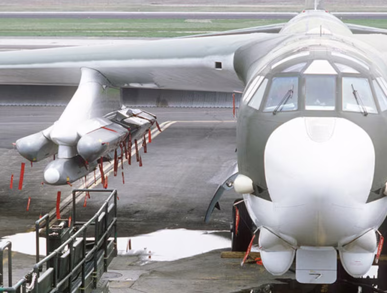 ANTD.VN - Tên lửa hành trình tấn công mặt đất AGM-86 có tầm bắn lên đến 2.500km cho phép máy bay ném bom chiến lược B-52 diệt mục tiêu ngoài tầm của mọi hệ thống phòng không. Đây được coi là tên lửa ngang tài ngang sức với Kh-101 của Nga.