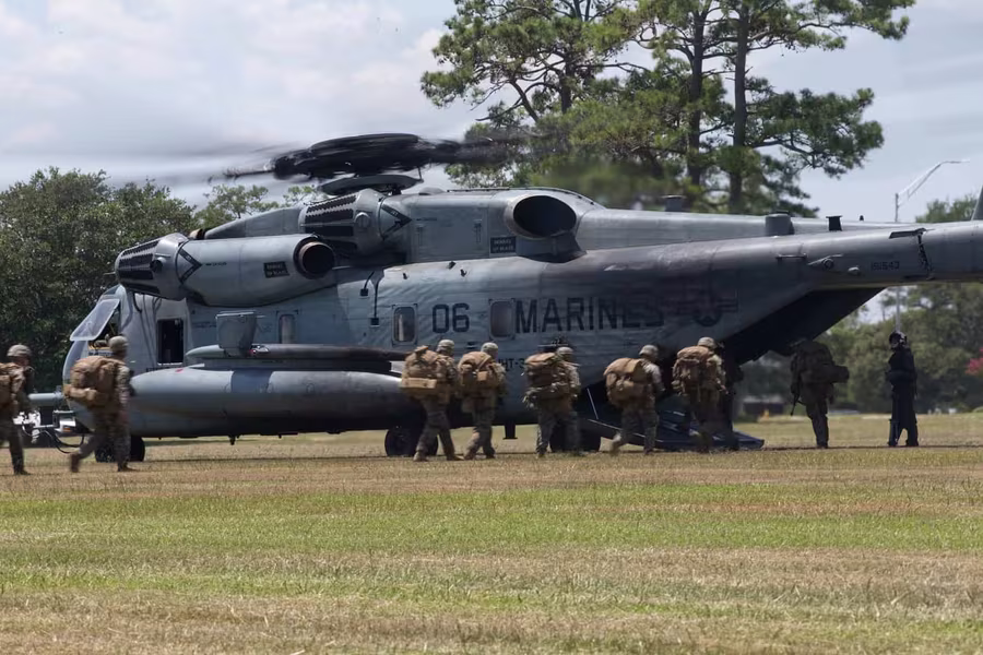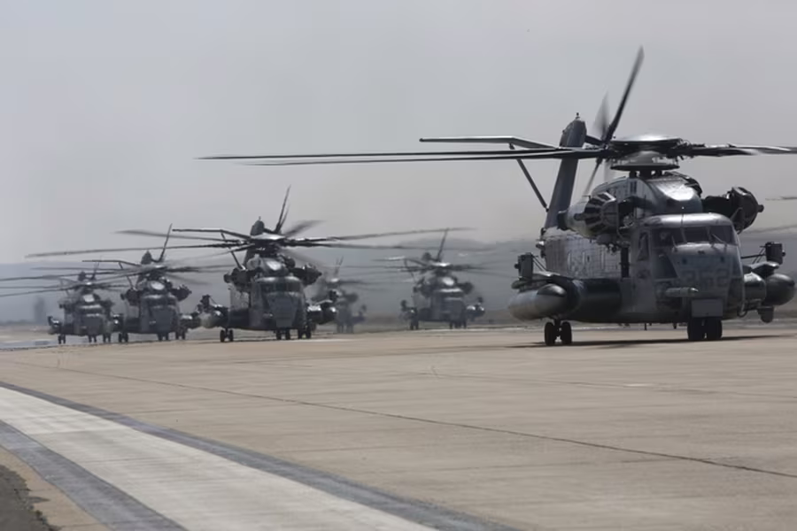 ANTD.VN - Máy bay lên thẳng CH-53E Super Stallions thuộc phi đội huấn luyện trực thăng hạng nặng (HMHT) số 302 của thủy quân lục chiến Mỹ đã thực hiện cuộc diễn tập lớn tại New River, Bắc Carolina.