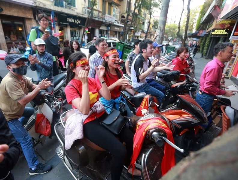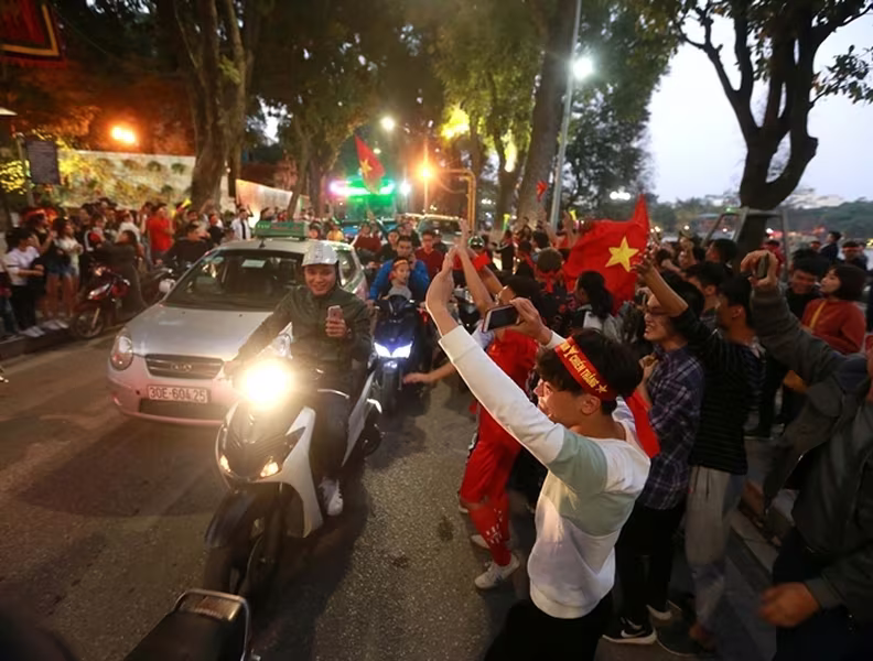 [ẢNH] Biển người đổ ra đường ăn mừng trong ngày trọng đại của bóng đá Việt Nam
