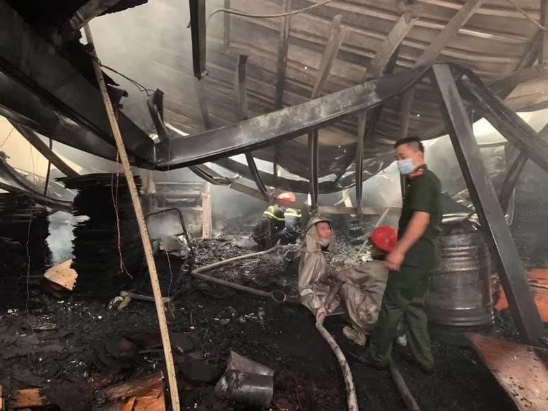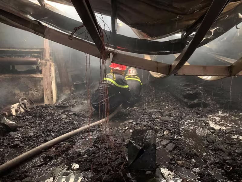 [Ảnh] Cận cảnh hiện trường vụ cháy nhà xưởng ở huyện Thạch Thất