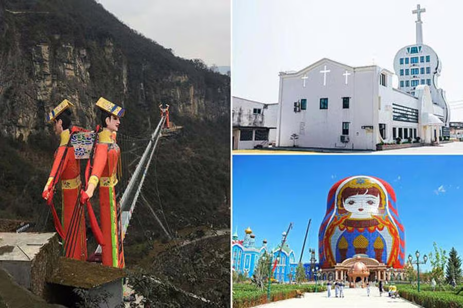 ANTD.VN - Nhà thờ hình cây vĩ cầm, cây cầu kính với 2 bức tượng “trông phát sợ”… là những ứng viên hàng đầu cho danh sách 10 công trình kiến trúc xấu nhất Trung Quốc. Dù nhiều năm chính quyền Trung Quốc đã cấm các công trình “quá khổ, kỳ lạ và sính ngoại”, nhưng họ không thiếu các công trình kiến trúc kỳ quặc và gây tranh cãi.