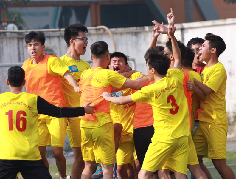 [ẢNH] Cầu thủ Hà Đông nâng bổng HLV sau chiến thắng nghẹt thở