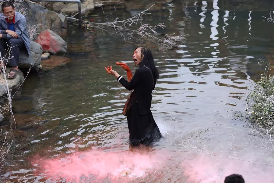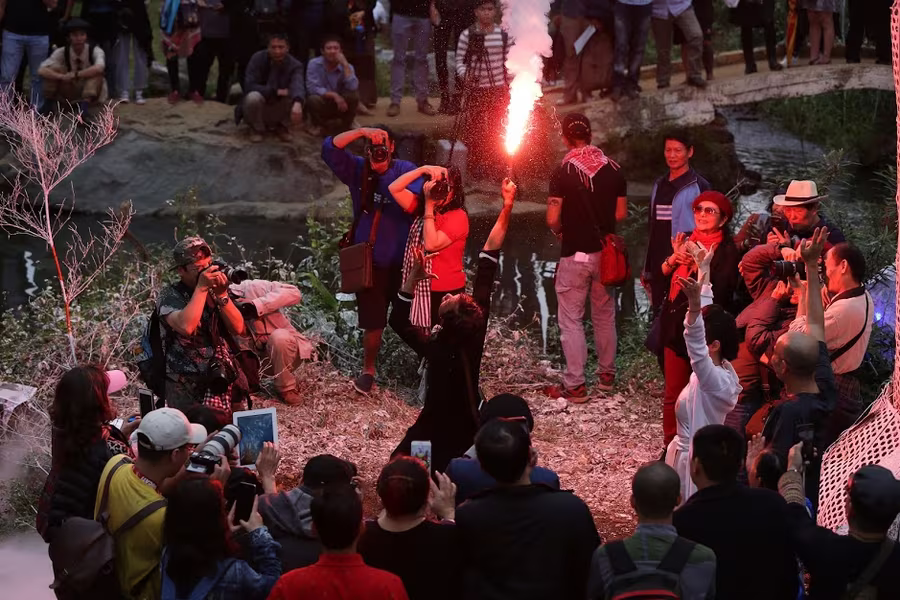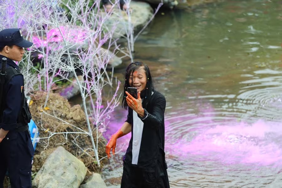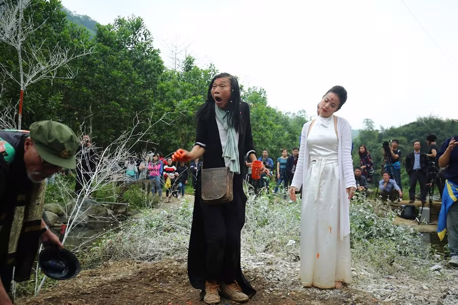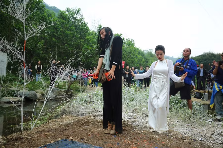 ANTD.VN - Nghệ sỹ Đào Anh Khánh một lần nữa lại khiến khán giả tò mò vì màn biểu diễn vừa dị biệt vừa ma quái. Trong Đáo xuân 9 diễn ra tại Lương Sơn, Hòa Bình, người nghệ sỹ này đã không làm khán giả phải thất vọng.