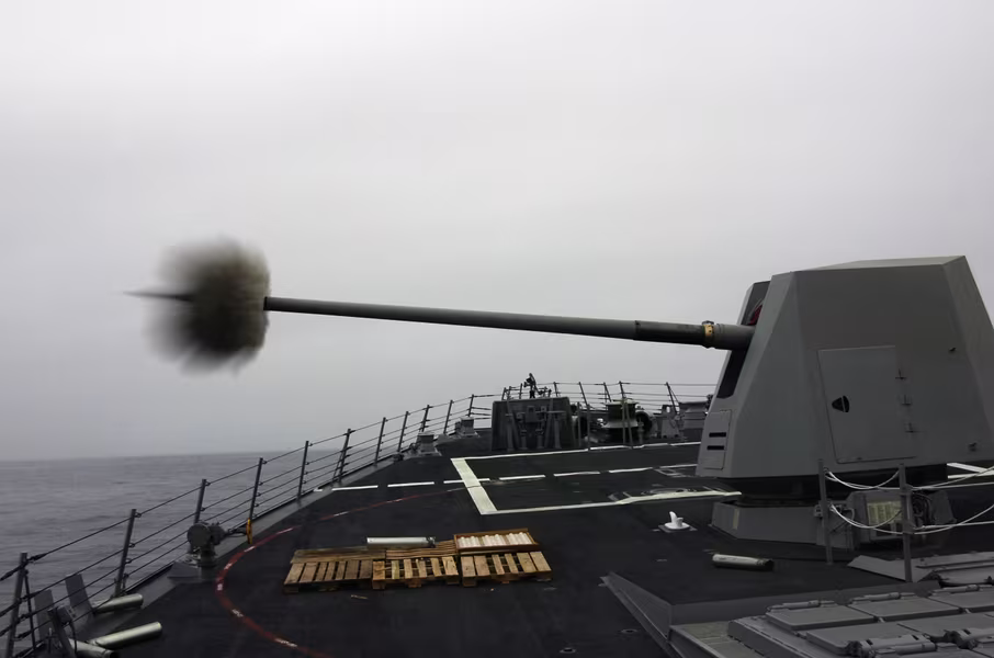 [ẢNH] Hải pháo cực mạnh trên tàu tuần dương Mỹ đang hiện diện trên Biển Đông
