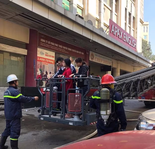 Lực lượng cứu hộ hướng dẫn thoát nạn cho gần 60 người dân trong đám cháy ở 71 Nguyễn Chí Thanh