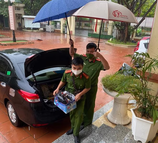 [Ảnh] Không ngại mưa lớn, lực lượng Công an về xã cấp căn cước gắn chip cho nhân dân