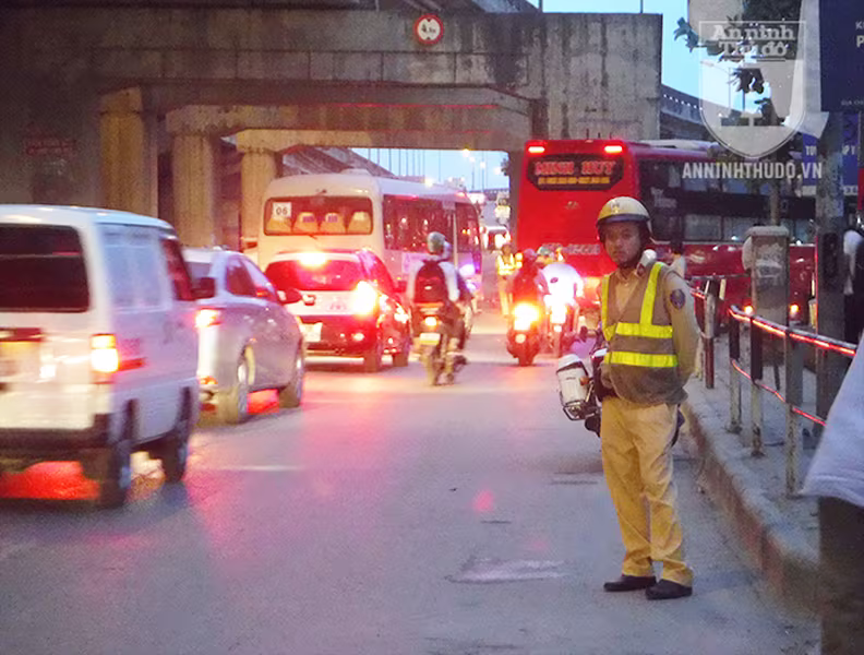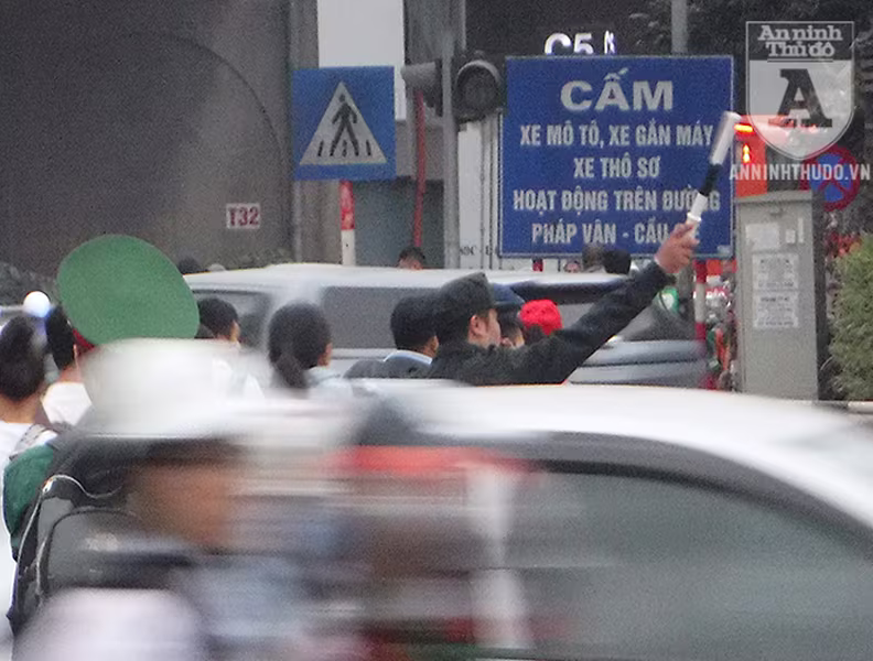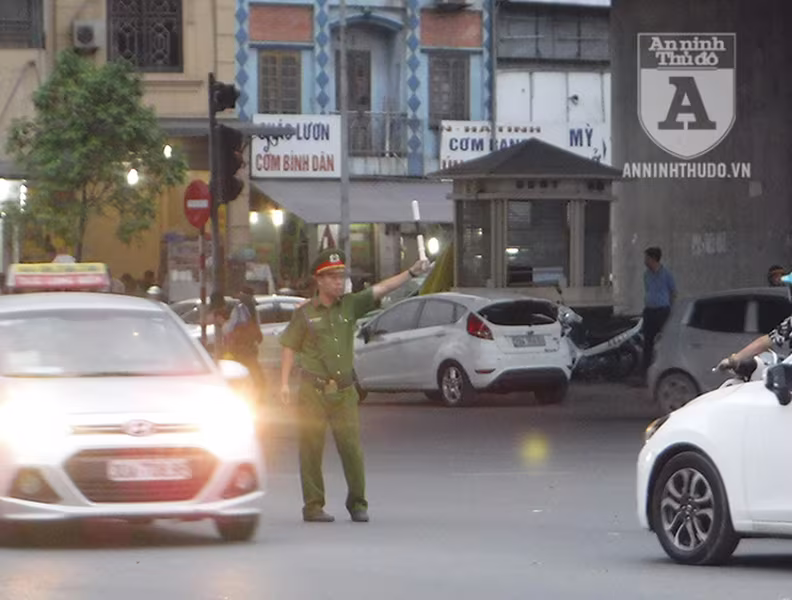 chiều 26-4, các CBCS của CATP Hà Nội đã nỗ lực hướng dẫn phân luồng giao thông,