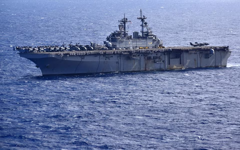 [ẢNH] Siêu tàu đổ bộ Mỹ tập trận cùng tiêm kích tàng hình F-35B ngay "cửa ngõ" biển Đông