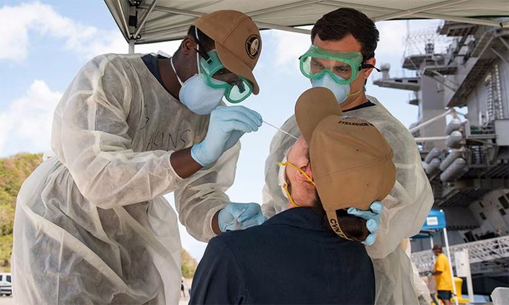 ANTD.VN - Tàu sân bay USS Theodore Roosevelt ghi nhận ba thủy thủ nhiễm SARS-CoV-2 ngay sau đợt diễn tập trên biển Đông. Trước đó dịch Covid-19 bùng phát buộc hải quân Mỹ phải triệu tập tàu về cảng để chữa bệnh cho các thủy thủ.