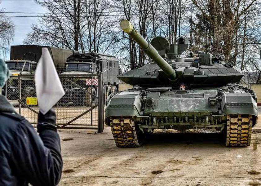 Khoảnh khắc xe tăng T-90M Nga phát nổ khi cán trúng mìn
