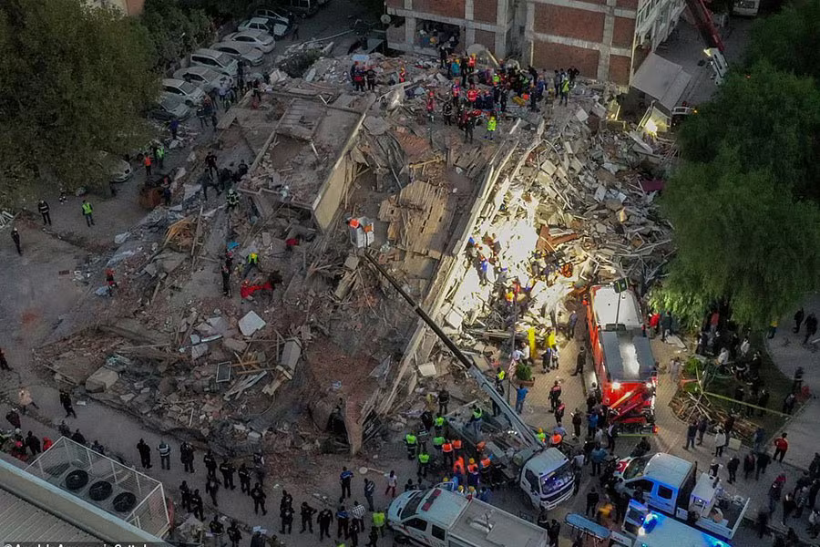 ANTD.VN - Lực lượng cứu hộ Thổ Nhĩ Kỳ suốt đêm qua 30-10 đã tìm kiếm tại các tòa nhà bị sập hoặc bị phá hủy trong trận động đất 7 độ richter, chạy đua với thời gian để tìm người sống sót. Dù quan hệ hai nước đang căng thẳng liên quan đến tranh chấp trên Địa Trung Hải, quan chức Hy Lạp và Thổ Nhĩ Kỳ đã cam kết hỗ trợ lẫn nhau trong khắc phục thiên tai này.