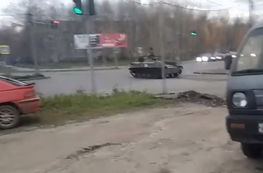 ANTD.VN - Xe chiến đấu bộ binh BMD-2 vượt đèn đỏ và va quệt với một phương tiện đang dừng ở ngã tư thành phố Kostroma, Nga nhưng không có ai bị thương.