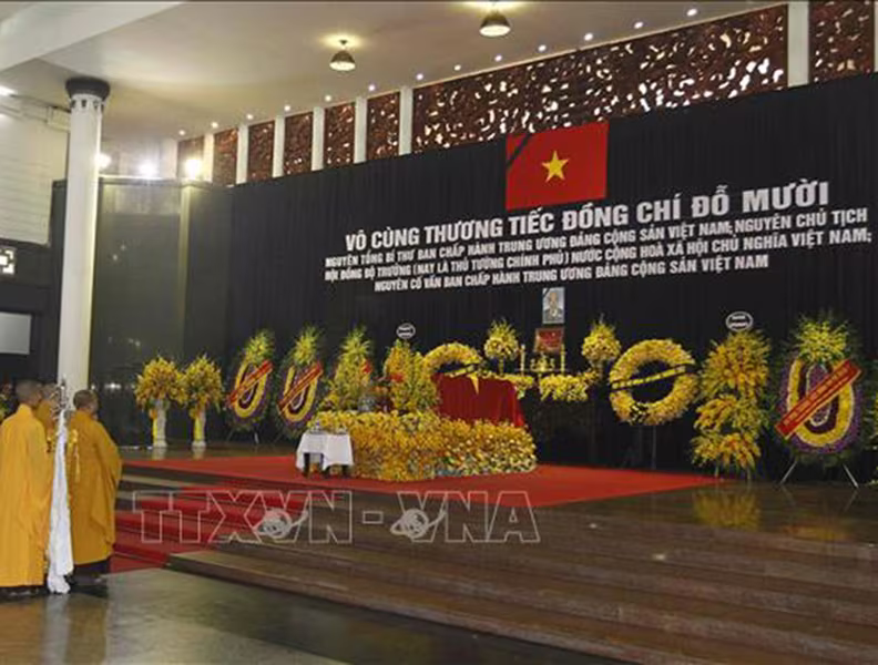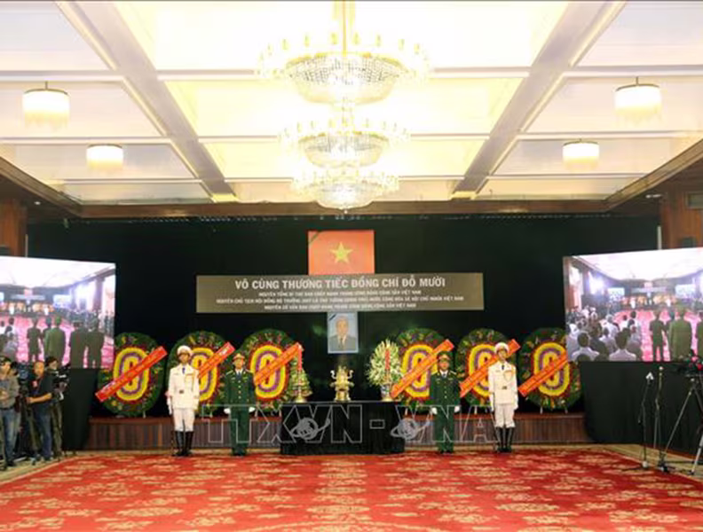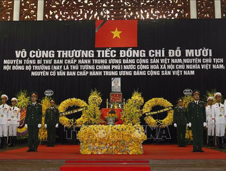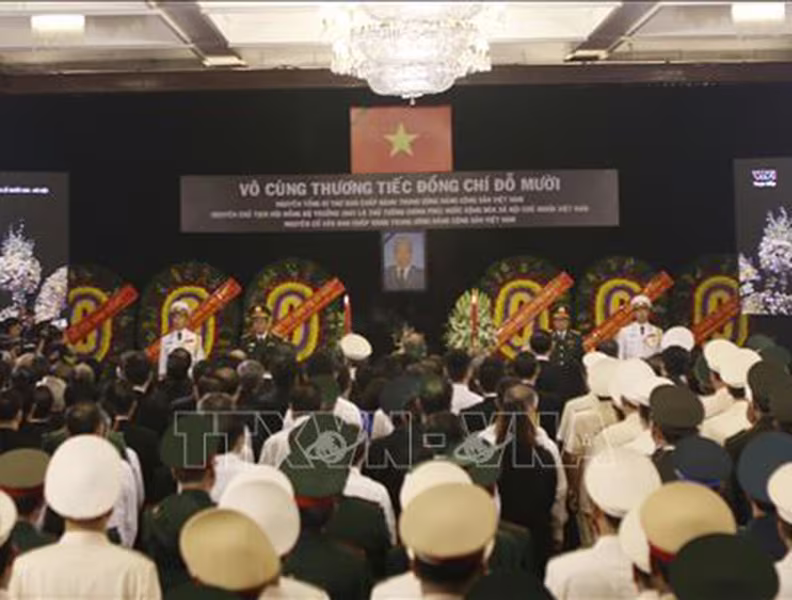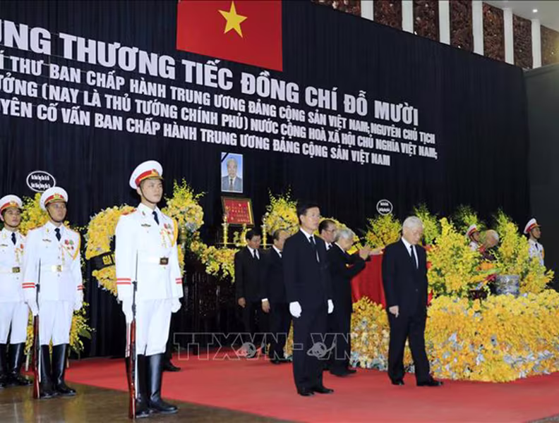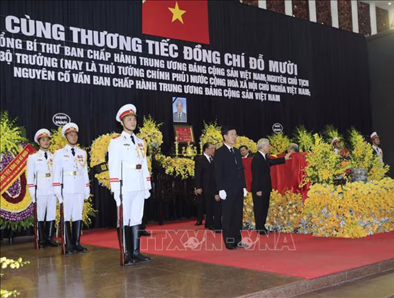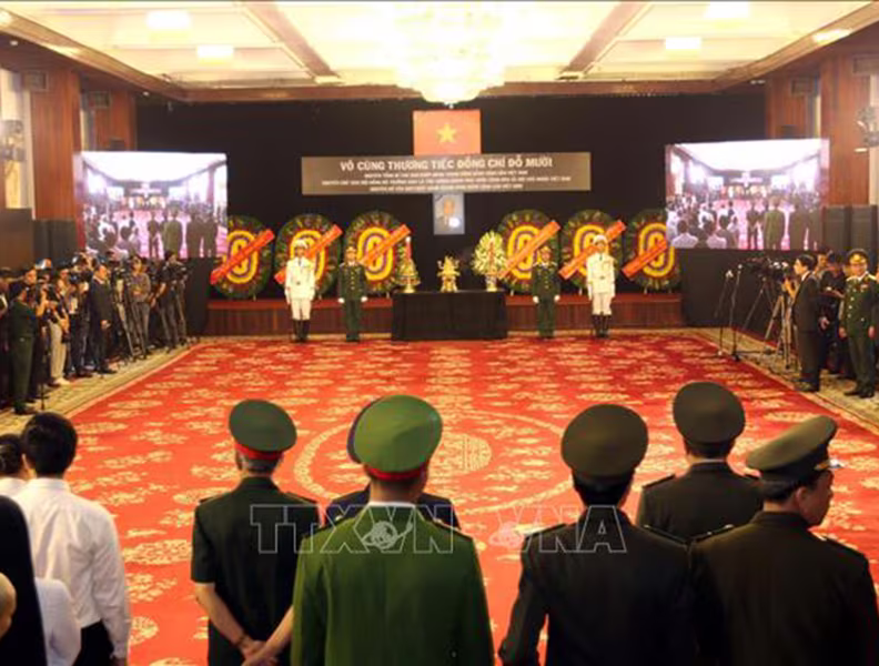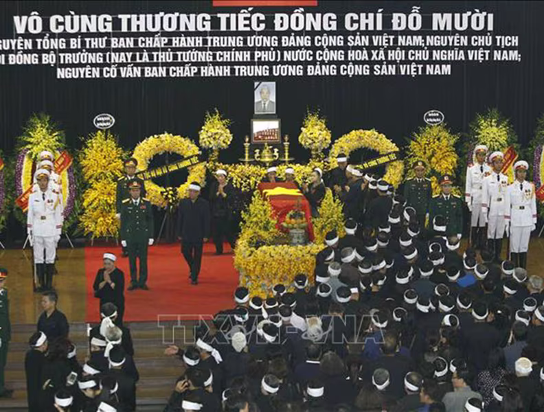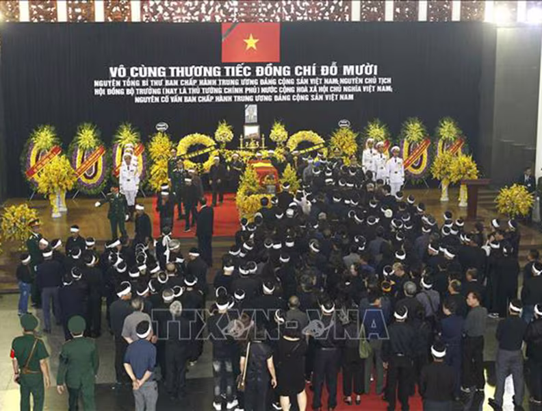 ANTD.VN - Sáng 7/10/2018, Lễ truy điệu và đưa tang đồng chí Đỗ Mười, nguyên Tổng Bí thư Ban Chấp hành Trung ương Đảng Cộng sản Việt Nam; nguyên Chủ tịch Hội đồng Bộ trưởng (nay là Thủ tướng Chính phủ) nước Cộng hòa xã hội chủ nghĩa Việt Nam; nguyên Cố vấn Ban Chấp hành Trung ương Đảng Cộng sản Việt Nam được tổ chức trọng thể tại Nhà tang lễ quốc gia, số 5 Trần Thánh Tông (Hà Nội) theo nghi thức Quốc tang.