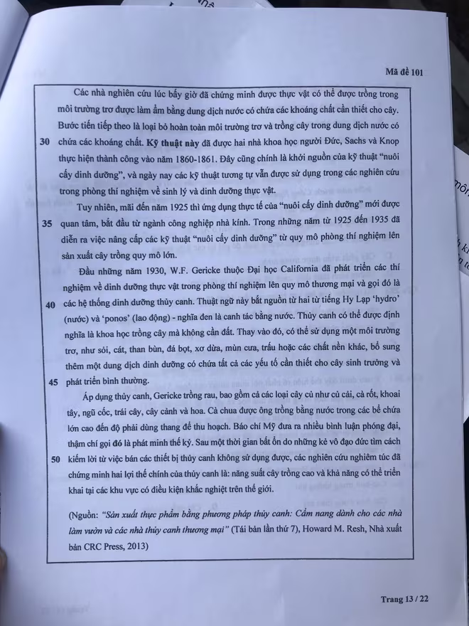 Điểm nổi bật ở phần Đọc hiểu là có dung lượng rất dài (chiếm 15/22 trang) với 35 câu hỏi, các chủ đề đa dạng. Trong đó, 4 bài đọc với 4 chủ đề mang “màu sắc Bách khoa”, nội dung bám sát các ngành học của trường: Vật liệu quang hướng; Công nghệ thông tin; Môi trường và Phương pháp canh tác nông nghiệp. Phần này tập trung đánh giá kỹ năng đọc cùng với năng lực phân tích, lý giải văn bản, khái quát, tổng hợp, biện luận về logic và suy luận từ văn bản. Hầu hết các bài đọc đều là văn bản dịch từ các tài liệu chuyên khảo nước ngoài, ngữ liệu không có quá nhiều từ chuyên ngành nhưng có nhiều khái niệm mới so với học sinh THPT.