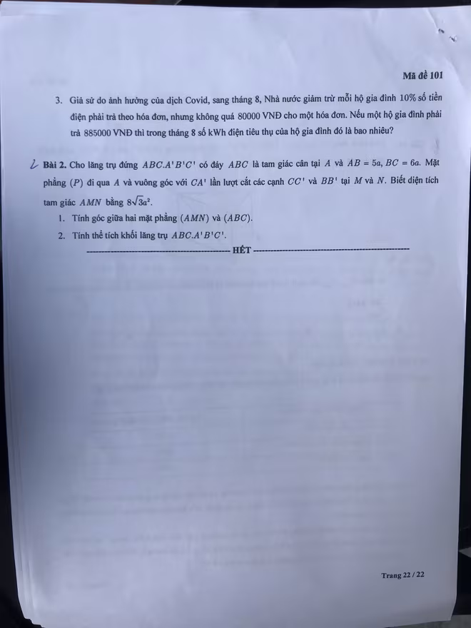 Câu 2: Là câu hỏi về hình học không gian cổ điển: tính góc giữa 2 mặt phẳng và thể tích của khối lăng trụ. Nội dung câu hỏi tương tự như câu hình không gian trong đề thi ĐH trước năm 2017.
