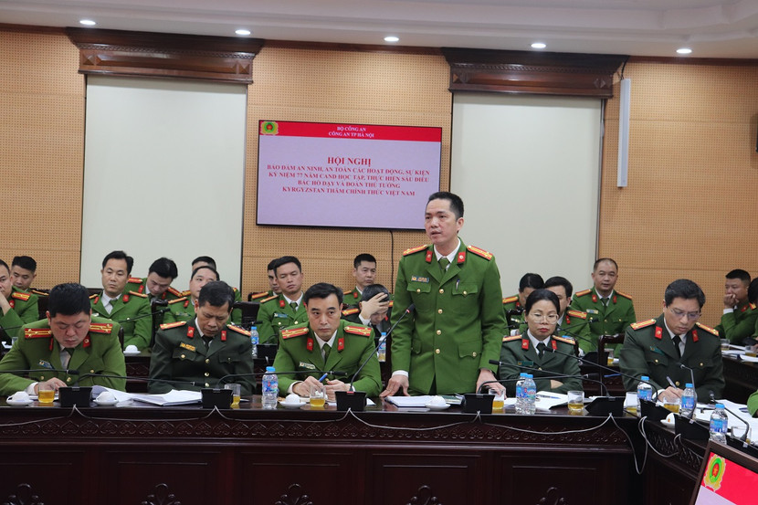 Tại Hội nghị, Thượng tá Nguyễn Phương Khanh, Phó trưởng Phòng Tham mưu CATP đã trình bày tóm tắt Phương án bảo đảm ANTT các hoạt động, sự kiện kỷ niệm 77 năm CAND học tập, thực hiện 06 Điều Bác Hồ dạy (11/3/1948 - 11/3/2025) tại khu vực Hồ Hoàn Kiếm, Quảng trường Đông Kinh Nghĩa Thục, quận Hoàn Kiếm, Hà Nội; và chuyến thăm chính thức Việt Nam của đoàn Thủ tướng Kyrgyzstan từ ngày 05 đến 07/3/2025.
