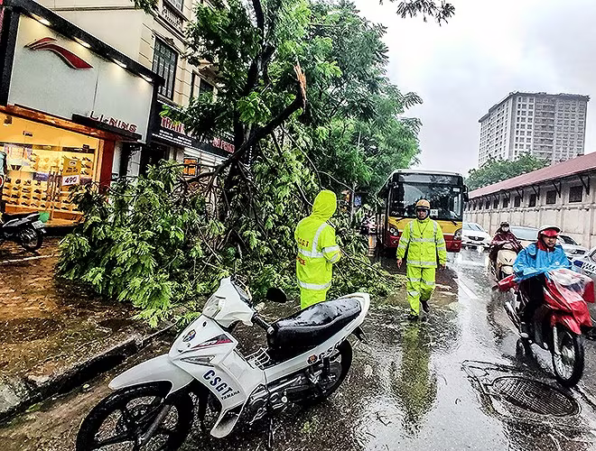Tại Thủ đô Hà Nội, Ban Giám đốc Công an thành phố đã chỉ đạo toàn lực lượng nêu cao tinh thần trách nhiệm, đảm bảo tối đa an toàn tài sản, tính mạng của nhân dân. Lực lượng Cảnh sát giao thông, Cảnh sát cơ động và Công an các phường đã được triển khai ứng trực phân luồng, đảm bảo an toàn giao thông, đồng thời tham gia khắc phục hậu quả cây đổ, đảm bảo cho nhân dân di chuyển an toàn. Hình ảnh những chiến sỹ Công an chân đất, ngâm mình trong vùng nước ngập để hướng dẫn an toàn cho người dân, là minh chứng rõ nét cho tinh thần sẵn sàng hy sinh, gian khổ, vì cuộc sống bình yên của nhân dân.