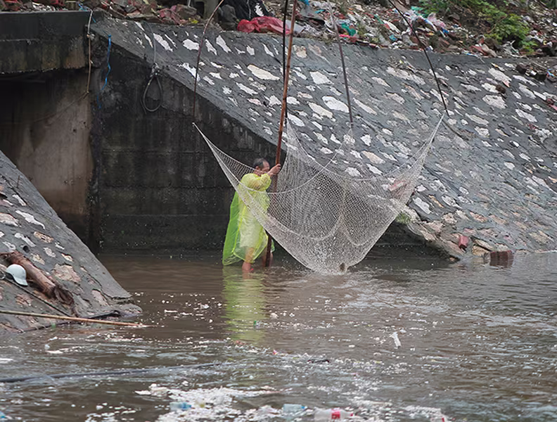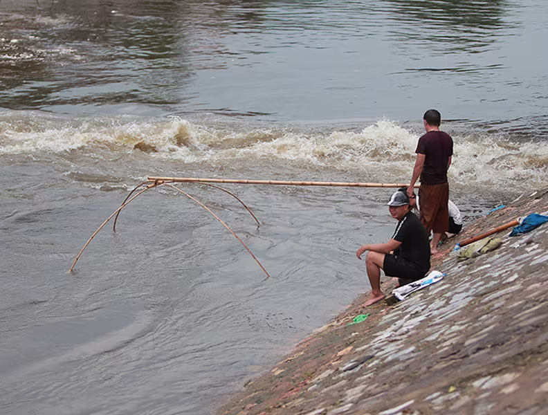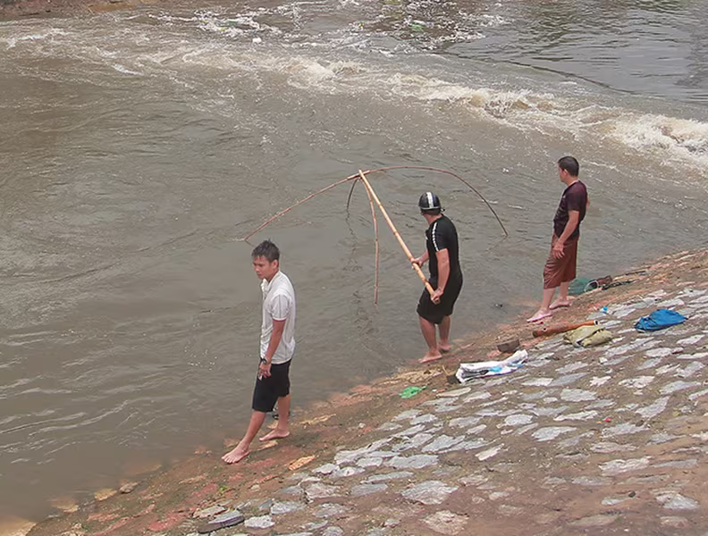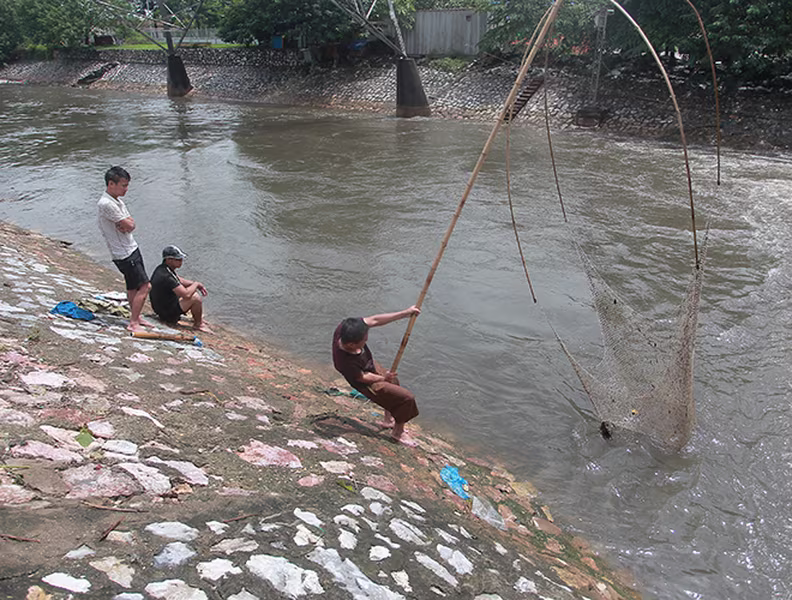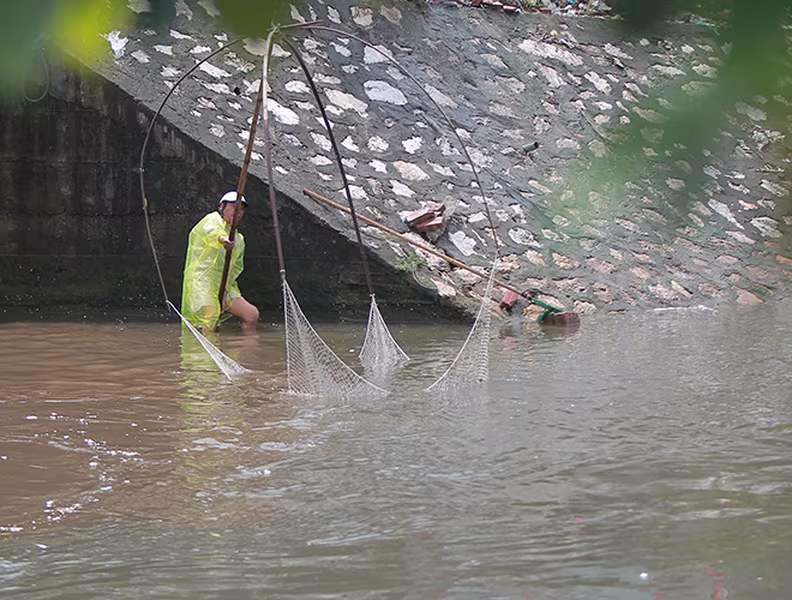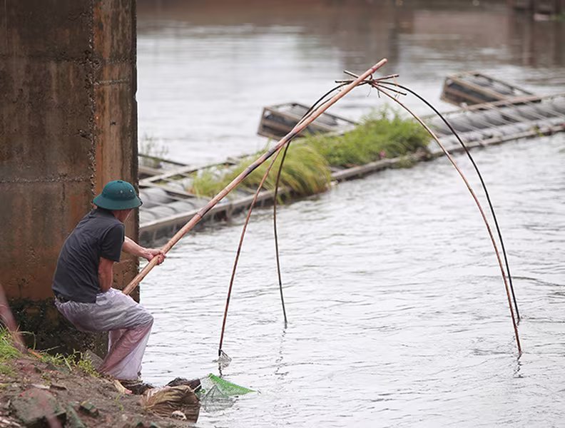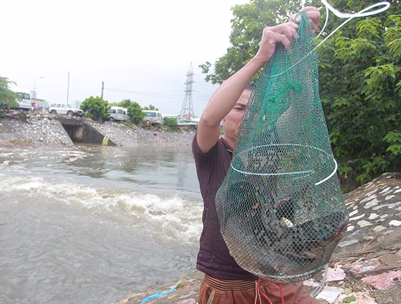 ANTD.VN -Mưa lớn liên tục trong những ngày qua khiến nước tràn ở một số đầm hồ kéo theo nhiều cá đổ ra sông Kim Ngưu. Từ chiều 4-8, nhiều dân Hà Nội đã mang lưới, vợt, kích điện ra một số cửa cống khu vực sông Kim Ngưu, đoạn gần nút giao Thanh Trì (Hà Nội) để bắt cá.