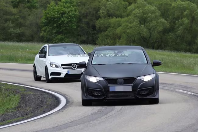 Phiên bản concept của Civic Type-R đã xuất hiện đã xuất hiện hồi tháng 3 vừa qua ở Geneva Auto Show, tuy nhiên, lần này các phóng viên đã ghi lại được hình ảnh của phiên bản sản xuất và thậm chí còn không được ngụy trang ở trung tâm kĩ thuật châu Âu. Bên cạnh Honda Civic Type-R 2015 một vài mẫu xe hatchback nổi tiếng khác như Mercedes-Benz A45 AMG, Renault Megane RS và Volkswagen Golf R cũng được bắt gặp đang chạy thử nghiệm.