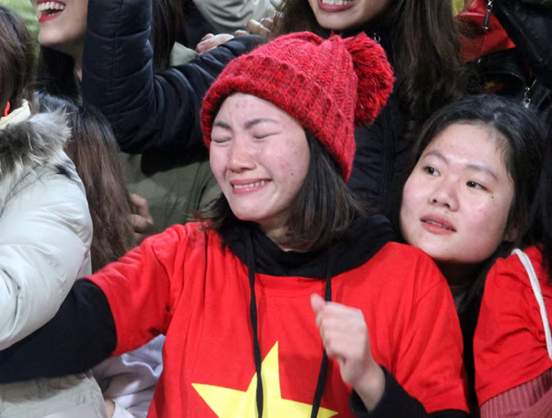ANTD.VN - Giữa không khí cuồng nhiệt trên sân Mỹ Đình tối 28-1, nhiều người hâm mộ đã bật khóc vì xúc động và hạnh phúc khi chứng kiến những "người hùng" U23 Việt Nam bằng xương bằng thịt.