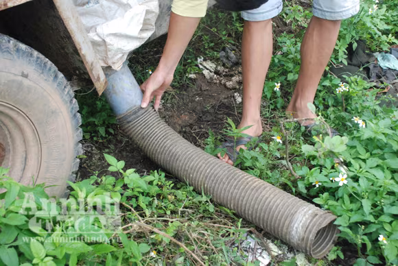 Qua điều tra, trưa cùng ngày, Xuân và Trung hút phân bồn cầu tại hẻm 38, đường Hai Bà Trưng, phường Lê Hồng Phong (TP Quảng Ngãi), sau đó vận chuyển đến tổ 15, phường Nghĩa Chánh, xả chất thải bẩn xuống ruộng.