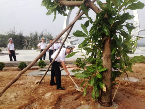Cán bộ Vùng 4 Hải quân trồng cây lưu niệm tại Khu tưởng niệm chiến sĩ Gạc Ma.