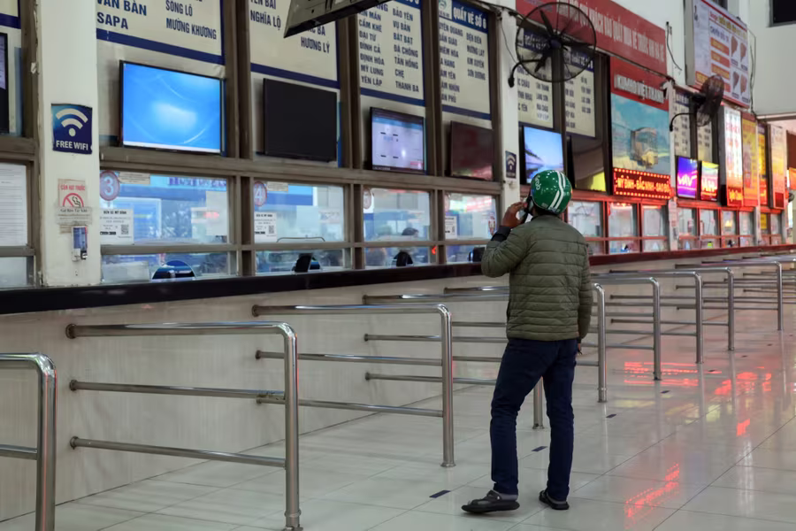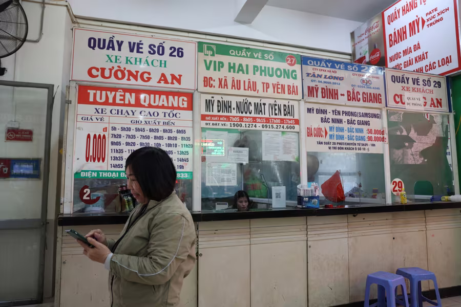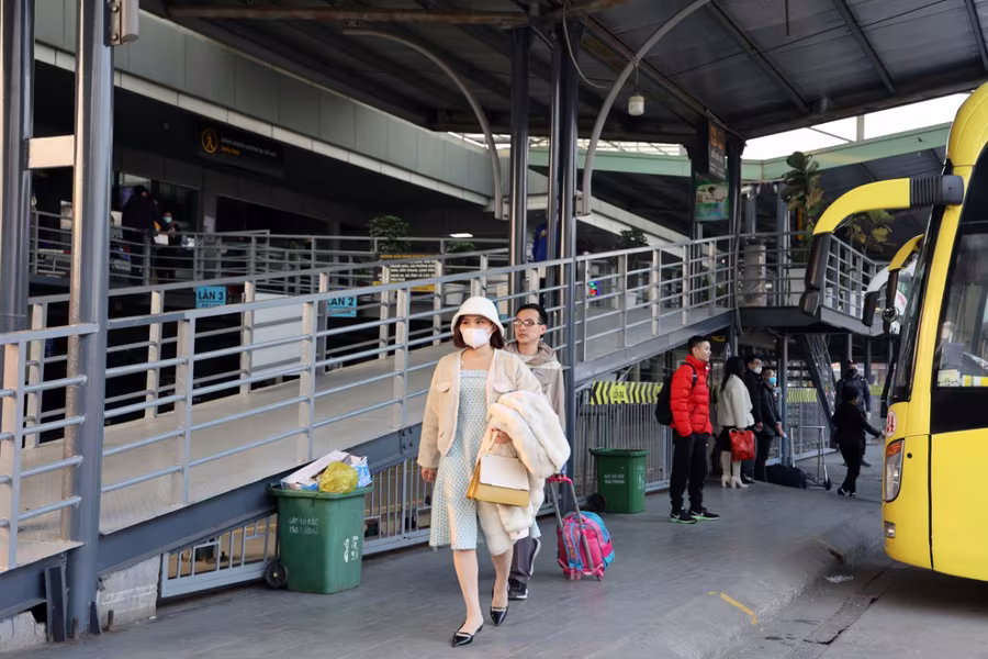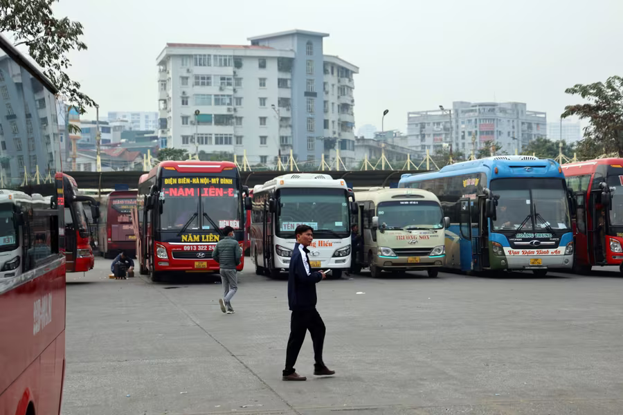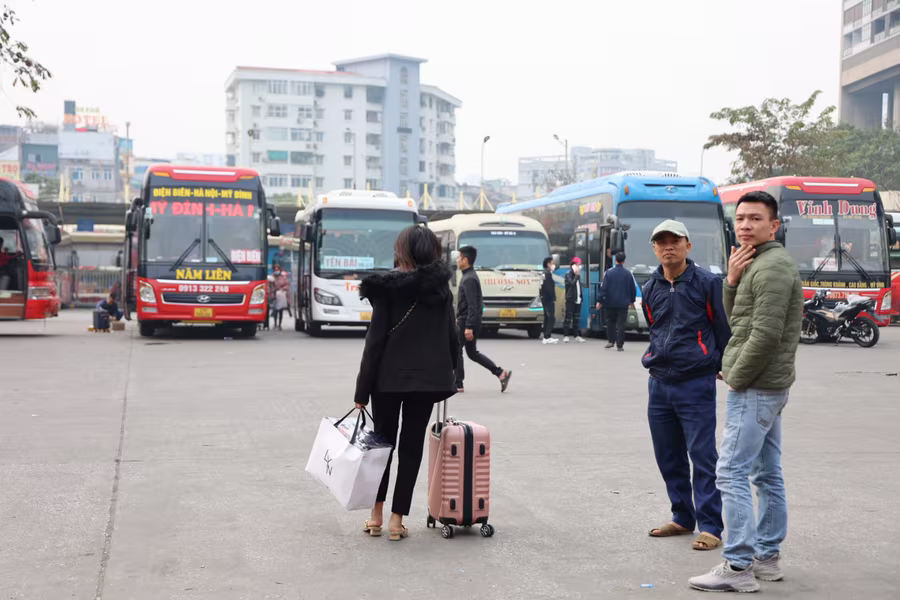 Bến xe Hà Nội vắng lặng chiều 29 Tết, xe xếp hàng dài chờ khách...