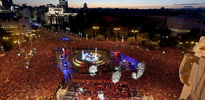 Đội tuyển Tây Ban Nha sau đó diễu hành ăn mừng chức vô địch qua các tuyến phố ở trung tâm thủ đô Madrid, trước sự hò reo không ngớt của khoảng 1 vạn khán giả.