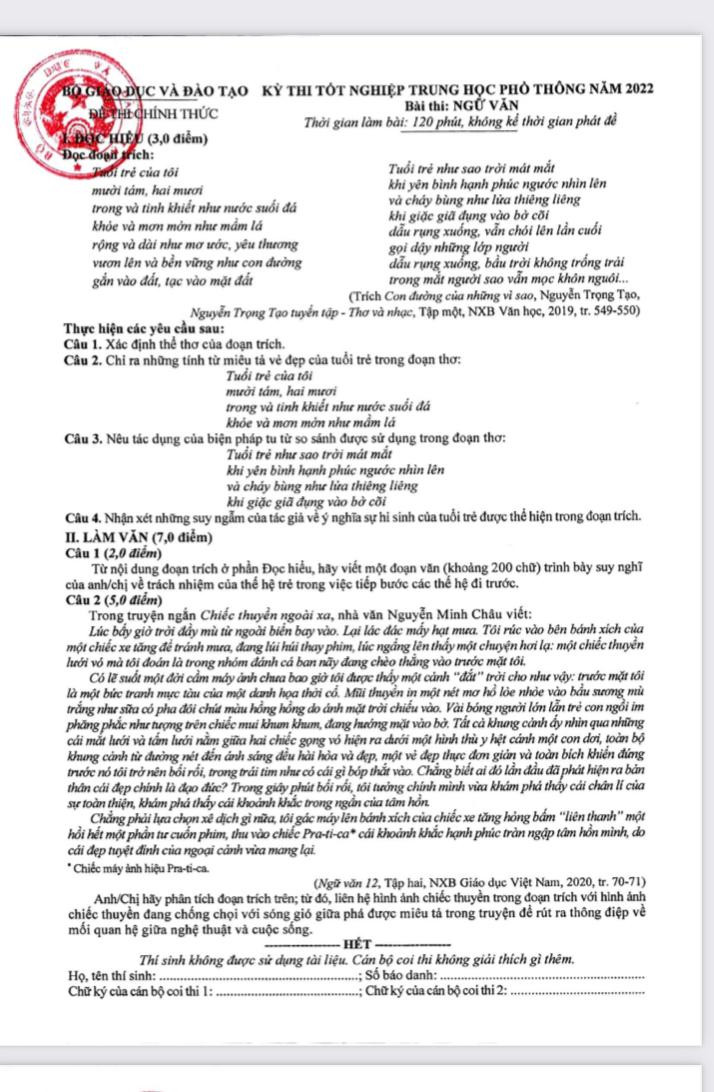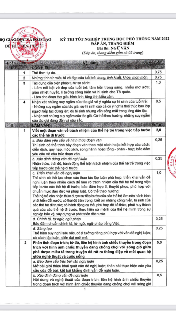 Là môn duy nhất thi dưới hình thức tự luận ở Kỳ thi tốt nghiệp THPT, chiều 10-7, Bộ GD-ĐT đã công bố đáp án và thang điểm môn thi này để hội đồng chấm thi cả nước bắt đầu chấm thi cho thí sinh. Số lượng làm bài thi Ngữ văn ở Kỳ thi năm nay là gần 981.600 thí sinh.
