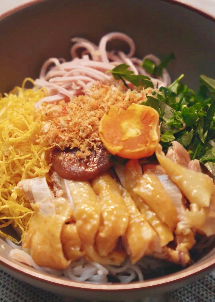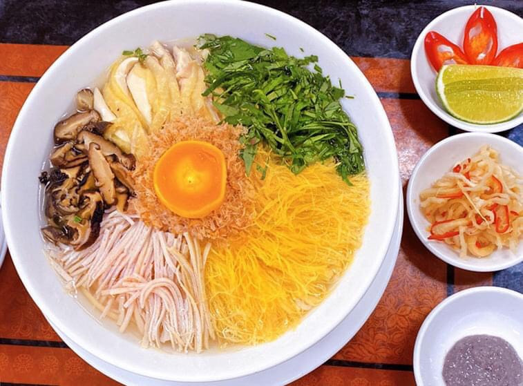 Trong các gia đình Hà Nội, bún thang thường được nấu sau Tết. Nó là món giải ngấy sau những ngày thịt thà, cỗ bàn đầy ắp và giống như một báo cáo: Đã hết Tết. Xưa, bún thang được đựng trong bát chiết yêu (loại bát có phần đáy nhỏ, miệng loe rộng) cỡ vừa để tô bún trở nên hấp dẫn. Bún sợi vừa phải, nào trứng, thịt gà, giò, củ cải, ruốc tôm… mỗi thức một nhúm, màu sắc hài hòa, đan xen, đối lập nhau để tôn nhau lên. Ở chính giữa tô bún là một nhúm hành răm, một nhúm ruốc tôm, 1 - 2 cái đầu nấm hương. Cuối cùng mới chan nước dùng một cách nhẹ nhàng theo vòng tròn để làm sao “trật tự” của những “topping” đẹp mắt ấy không bị lộn xộn, để tô bún trở nên hấp dẫn nhất, đẹp đẽ nhất, xứng tầm tinh hoa ẩm thực Hà thành.