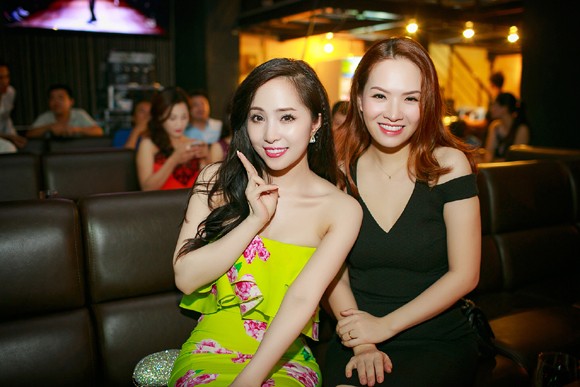 Xuất hiện tại sự kiện, Quỳnh Nga diện chiếc váy hoa cúp ngực khá gợi cảm. Người đẹp cũng có dịp hội ngộ “cô gái thời tiết” Đan Lê. Hai người bạn thân tranh thủ lưu lại hình ảnh bên nhau.