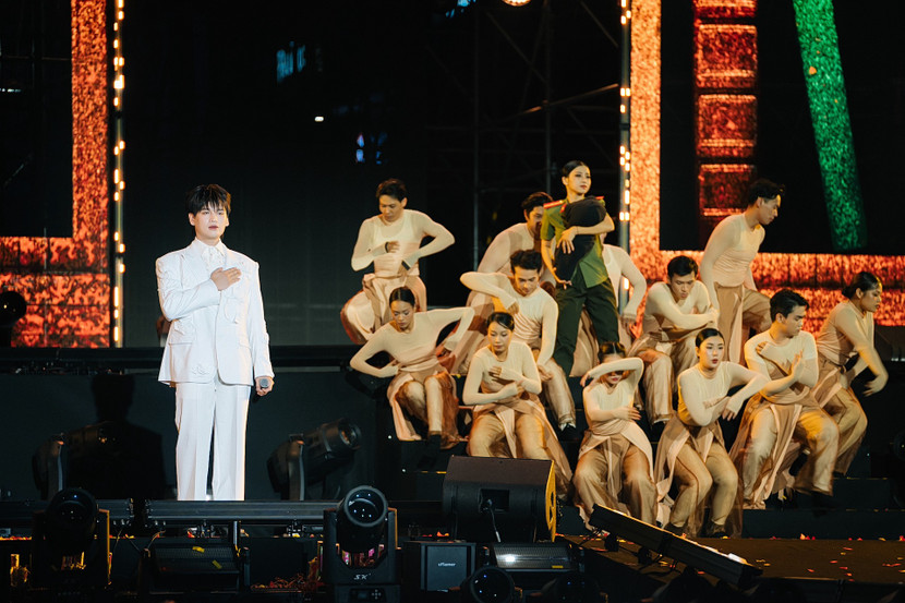 | Nguyễn Trần Trung Quân, Dương Hoàng Yến và Đông Hùng hoà giọng "Nối vòng tay lớn" tại Đại hội khoẻ Vì an ninh Tổ quốc |