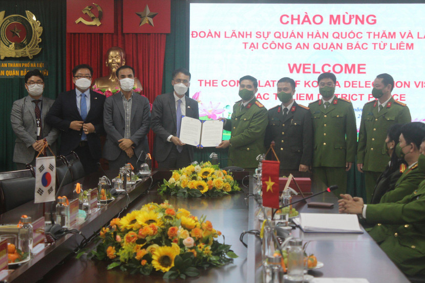 Chiều 2-12, Đoàn lãnh sự quán Hàn Quốc đã đến trao thư khen cho CAQ Bắc Từ Liêm.