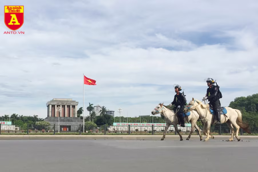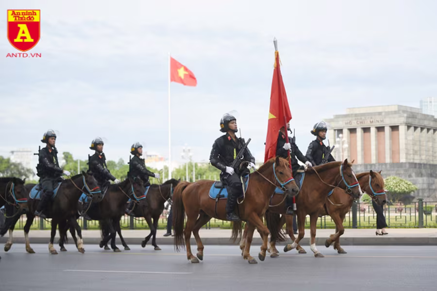 ANTD.VN - Lực lượng Cảnh sát cơ động Kỵ binh - Bộ Tư lệnh Cảnh sát Cơ động đã diễu hành trên đường Độc Lập (Ba Đình, Hà Nội), tại khu vực trước Tòa nhà Quốc hội và Lăng Chủ tịch Hồ Chí Minh trước sự chứng kiến của các đại biểu Quốc hội.