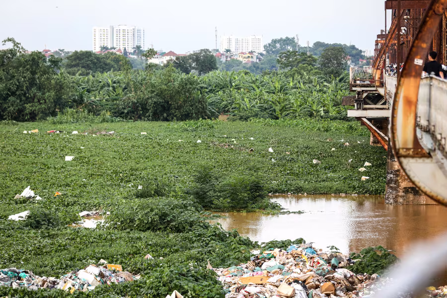 ANTD.VN - Do ảnh hưởng của bão số 10 cùng nước lũ từ thượng nguồn khiến mực nước trên sông Hồng khu vực Hà Nội dâng cao gây ảnh hưởng đến cuộc sống của các hộ dân tại khu vực cầu Long Biên. Nhiều ngôi nhà dưới chân cầu bị ngập sâu, có nơi nước đã chạm gần tới mái, khu vực bãi giữa vốn là nơi cư trú của nhiều hộ dân nhưng bị cô lập hoàn toàn.