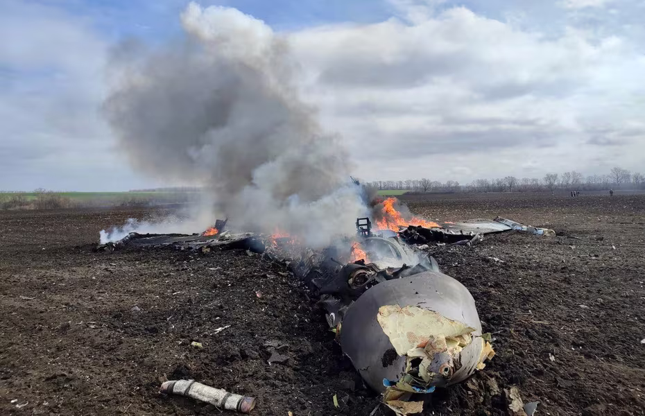 Cận hình ảnh nghi ngờ là tiêm kích Su-35 Nga bị tên lửa S-300 Ukraine bắn hạ