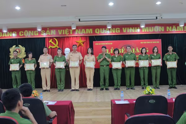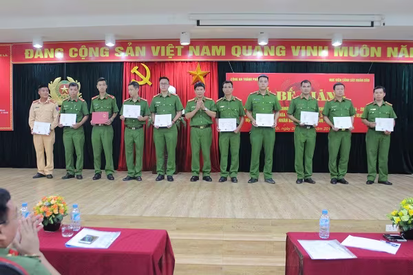 Đại diện 24 học viên được Giám đốc Học viện Cảnh sát nhân dân tặng giấy khen vì có thành tích xuất sắc trong học tập và quản lý lớp học