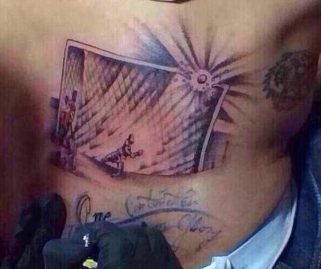 Hình xăm cú sút bóng đập xà ngang của tiền đạo Chile Mauricio Pinilla