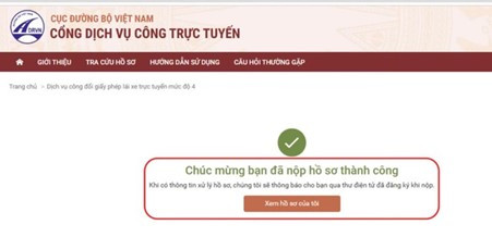 Bước 11: Trong trường hợp chọn "Nhận kết quả trực tiếp", người đăng kí đổi GPLX trực tuyến sẽ nhận được email hoặc tin nhắn điện thoại, thông báo cụ thể thời gian và địa điểm đến giải quyết. Thành phần hồ sơ khi mang đến bộ phận tiếp nhận đổi GPLX gồm: