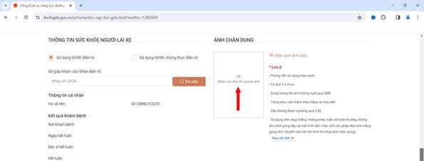 Người dân tải ảnh chân dung lên theo hướng dẫn dưới đây: