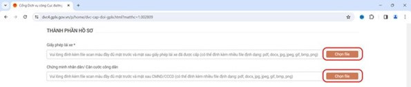 Bước 7: Mục Thành phần hồ sơ người dân tải các file đính kèm gồm GPLX và CCCD sau đó