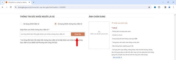 Bước 6: Tại phần Thông tin sức khỏe người lái xe, người dân chọn Giấy khám sức khỏe điện tử hoặc Giấy khám sức khỏe chứng thực điện tử sau đó điền thông tin.