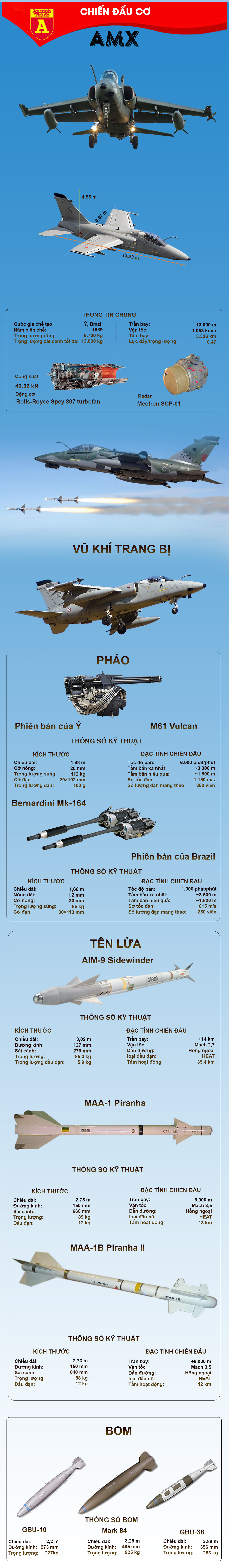 Khi nhắc đến các chiến đấu cơ, người ta thường nói đến các các máy bay có xuất xứ từ Mỹ, Nga, Pháp, liên minh Châu Âu…, tuy thế Brazil và Ý cũng là những quốc gia có nền khoa học công nghệ quân sự phát triển, bằng chứng là chiếc chiến đấu cơ AMX được xếp vào Top 10 máy bay cường kích nguy hiểm nhất thế giới.
