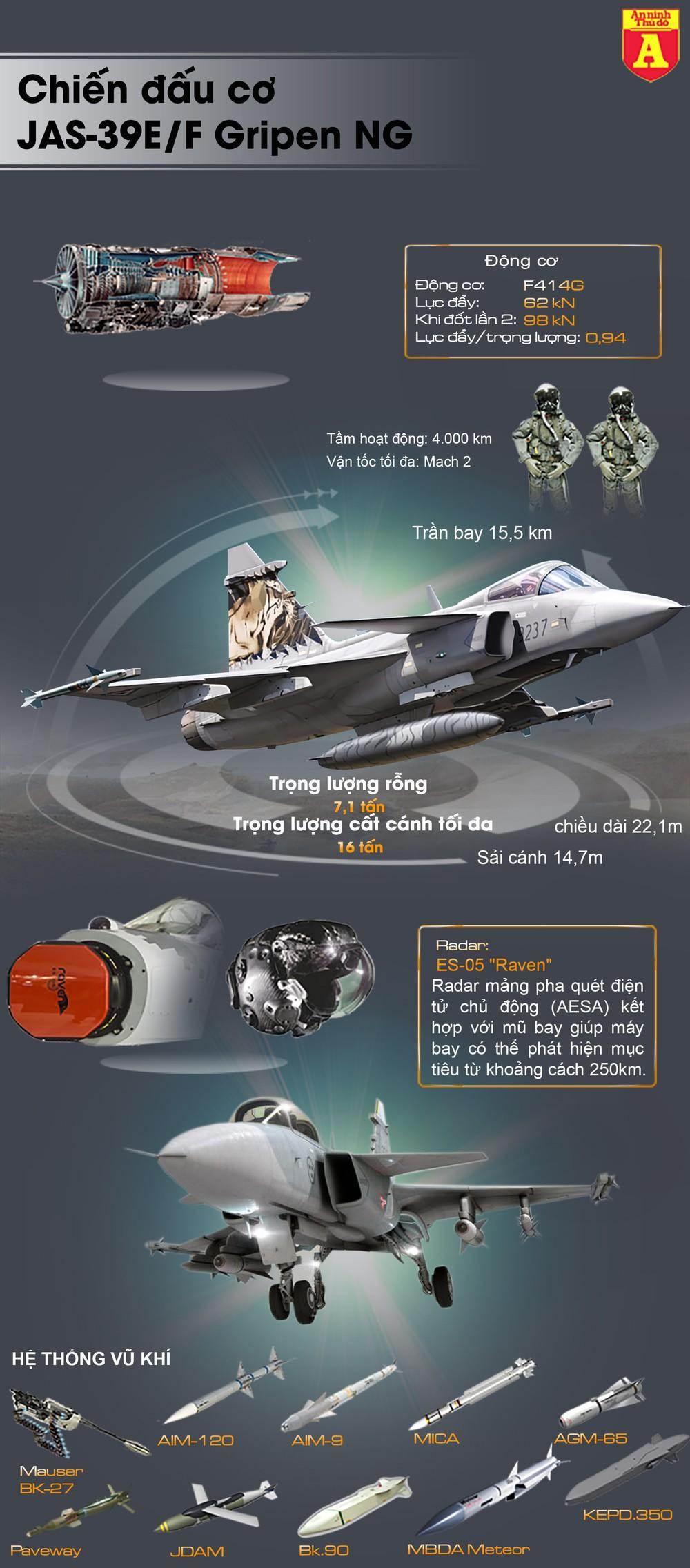 Vì những khả năng ưu việt của mình nên JAS-39 Gripen là một trong những chiến đấu cơ hạng nhẹ hàng đầu thế giới hiện nay. Biến thể mới nhất mang tên JAS-39E/F Gripen NG có sức mạnh vượt trội.