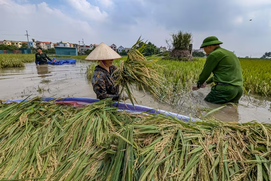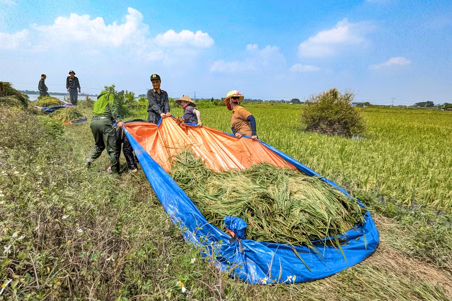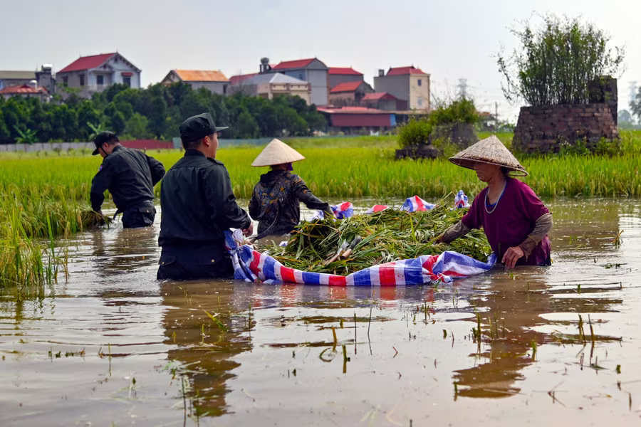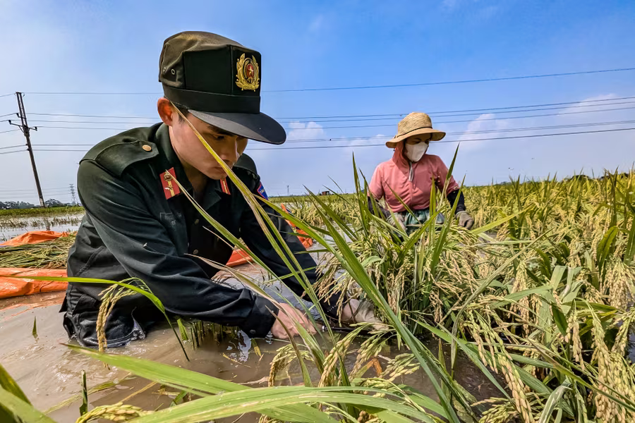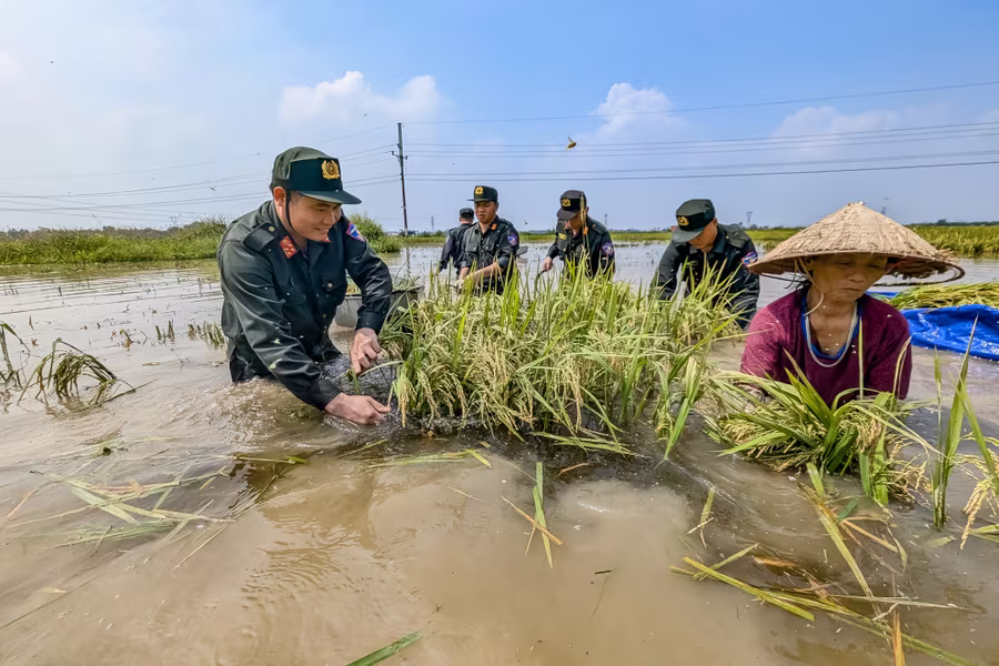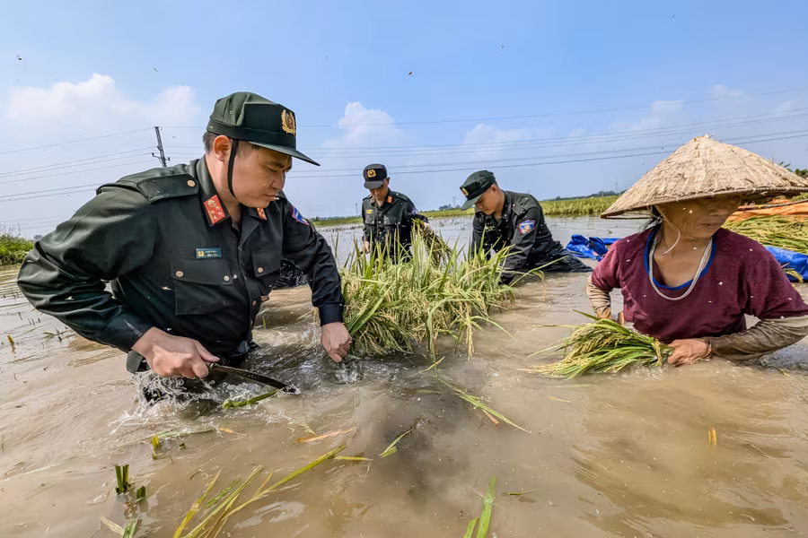 Hình ảnh xúc động khi hàng trăm cán bộ, chiến sỹ Công an Thủ đô dọn dẹp sau ngập lụt giúp người dân xã Trung Giã
